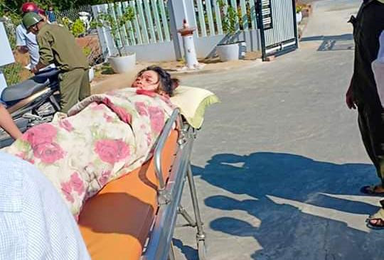 Nạn nhân Trần Thị Ánh được đưa đi cấp cứu. Ảnh: T.Đ.