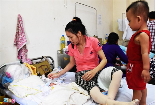 Sáng 5/3, phóng viên Zing.vn đã đến Bệnh viện Phụ sản Nhi Đà Nẵng để thăm hỏi mẹ con sản phụ Nga. Tại phòng 11, người thân của gia đình đến thăm hỏi, chúc mừng sản phụ đã mẹ "tròn con vuông".