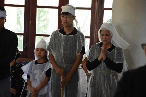Đứng cạnh linh cữu anh Hùng, 3 mẹ con chị Yến (vợ và con anh Hùng), cúi đầu cảm ơn những bạn bè, đồng nghiệp đã đến chia buồn và tiễn đưa anh Hùng về nơi an nghỉ cuối cùng.