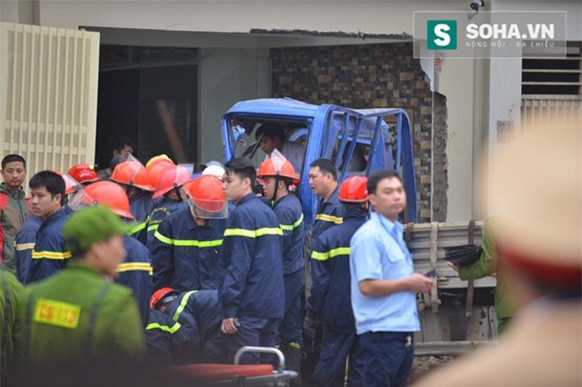 Phía bên kia đường, chiếc ô tô tải loại nhẹ đang bị cắm đầu vào cổng cửa hàng Viglacera. Tôi nghe thấy tiếng phụ nữ trên xe tải kêu cứu: "Hai mắt tôi nổ rồi".