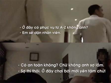 Tại các phòng VIP nhiều khách nam đang nằm dài bên cạnh là các cô gái đã cởi bỏ áo, không mặc nội y đang phục vụ. Phát hiện cảnh sát, các cô gái hốt hoảng vơ vội trang phục lao vào nhà vệ sinh để che thân.