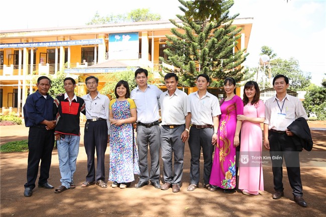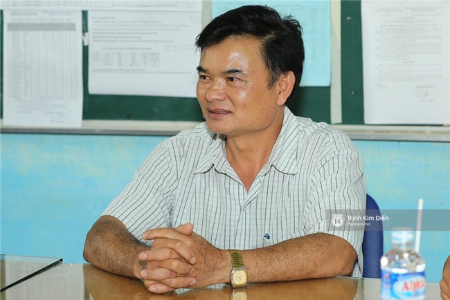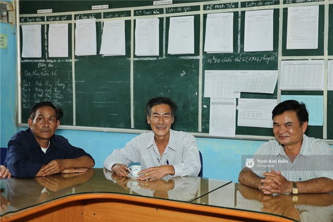 Thầy hiệu trưởng rất tự hào vì trường có một Hoa hậu Hoàn vũ. Chủ tịch Uỷ ban nhân dân xã (áo đen) cũng có mặt trò chuyện cùng báo chí.
