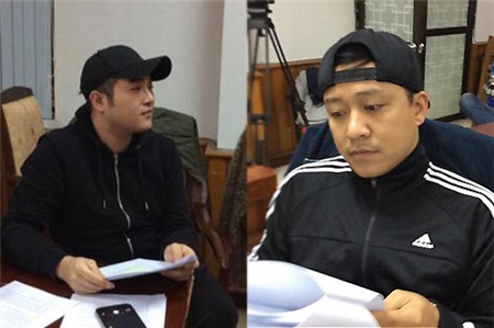 Minh Quân và Tuấn Hưng trong một buổi tập Táo Quân. |
