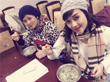 ![]() Nghệ sĩ Quang Thắng, Minh Hằng, Vân Dung thưởng thức món cháo chim do fan tặng. |
