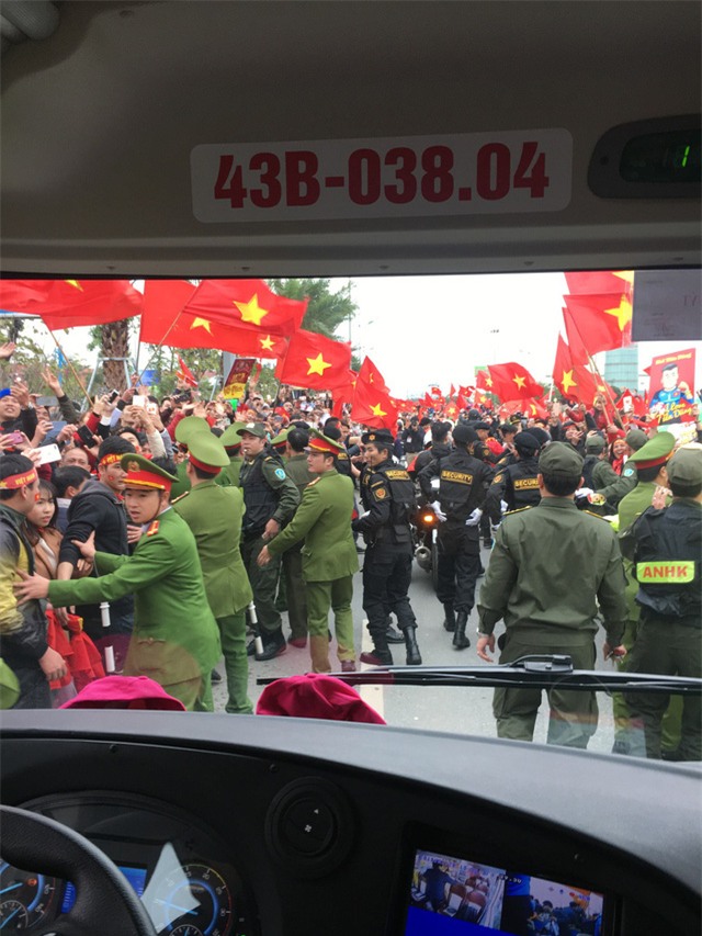 Cũng theo nữ Đại úy CSGT, dưới trời mưa rét các cầu thủ không ngớt niềm vui mừng và nhiệt tình vẫy chào các cổ động viên, nhưng thỉnh thoảng vẫn nhìn thấy sự mệt mỏi của các em sau một kỳ thi đấu căng sức và hành trình dài 5 tiếng bay từ Trung Quốc về Hà Nội.