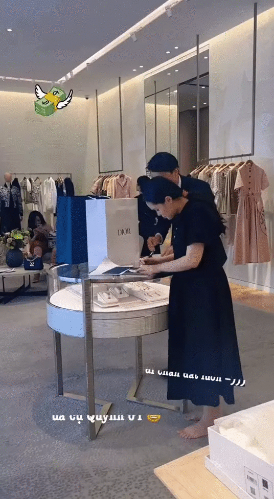 Không những thế, trong lúc lựa đồ ở cửa hàng, Quỳnh Anh cũng vì quá mê những món đồ mà sẵn sàng đi chân đất để xem. Nhiều người bày tỏ sự thích thú với niềm đam mê mua sắm của bà xã Duy Mạnh, bên canh đó, bà mẹ bỉm sữa cũng ghi điểm trong mắt fan bởi sự giản dị của mình. Dù là một cô tiểu thư "ngậm thìa vàng" từ bé nhưng Quỳnh Anh vẫn ăn mặc khá giản dị, không màng đi chân đất.