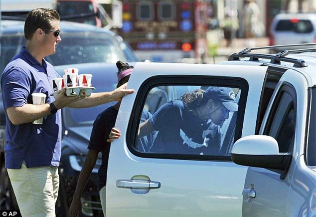 Các bức ảnh được đăng trên Daily Mail cho thấy tiểu thư út của tổng thống Mỹ mặc đồng phục của nhà hàng và đang chăm chú kiểm tra các đơn đặt hàng của khách tại quầy thu ngân.