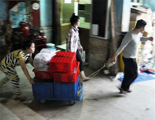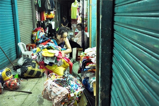 Chiều 10. 11, nhiều tiểu thương kiểm kê hàng hóa, đóng vào thùng giấy để chuyển sang nơi kinh doanh mới. |