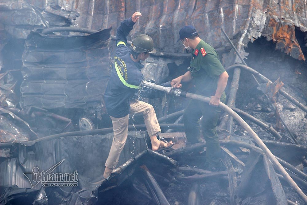 Theo ông Quyền, việc dập lửa được tiến hành từng bước, tổ chức khoanh vùng, không cho lửa lây lan sang nhà dân, không cho lan sang các ki ốt nhà chợ chính, các nhà xưởng sản xuất của công ty nhựa.
