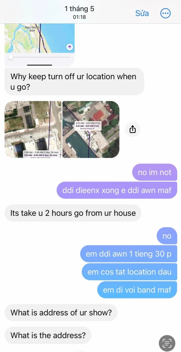 Anh N. kiểm soát Mây Bae, gắn định vị và luôn hỏi đang ở đâu