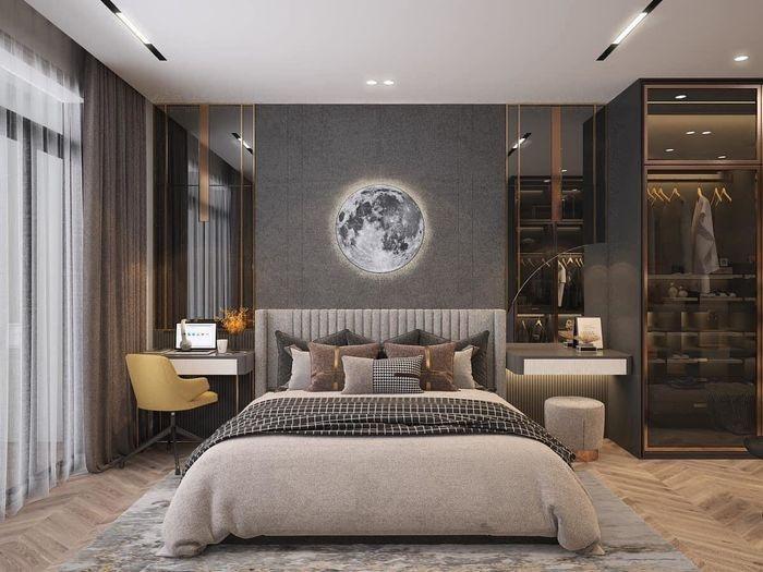 Phòng ngủ của 2 vợ chồng là phòng master chuẩn khách sạn 5 sao nhằm mở rộng không gian, tạo sự thoải mái.