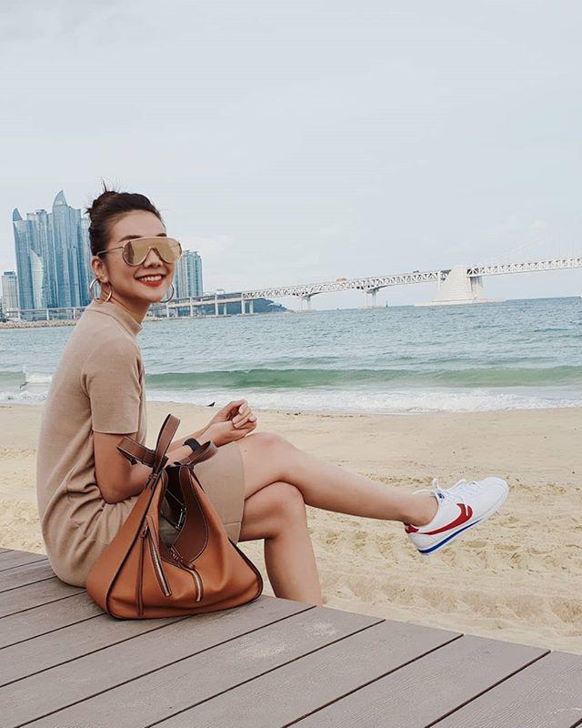 Dù ở sự kiện hay dạo phố, Thanh Hằng luôn gắn bó không rời vô vàn kiểu kính mát độc đáo nhưng người đẹp lại rất chăm chỉ thay đổi diện mạo. Tông son mà chân dài ưa chuộng cho phong cách thường ngày thiên về tông cam, hồng đất nhẹ nhàng.