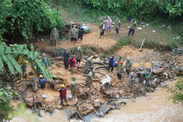 Theo đại diện Cục CSGT, trước và tại điểm sạt lở gây thiệt hại lớn về người và phương tiện là hai điểm sạt lở khác chặn trước và sau, thời tiết mưa lớn, sóng điện thoại không có nên việc tiếp cận hiện trường của lực lượng chức năng vô cùng khó khăn, vất vả, phải dùng máy xúc và sức người để san gạt khối lượng lớn đất đá chặn đường.