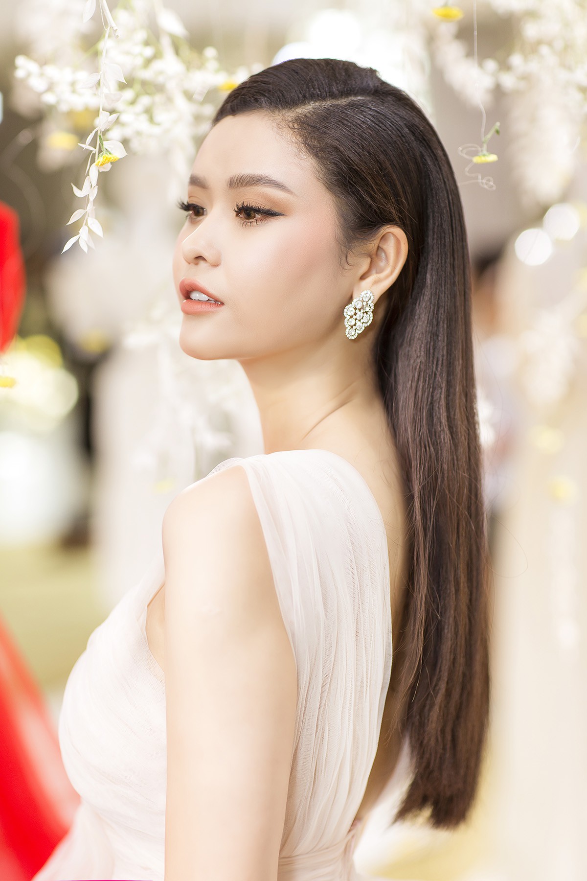 Chiều ngày 23/8,Trương Quỳnh Anh xuất hiện trong không gian lãng mạn, ngọt ngào khi đến tham gia 1 sự kiện ở TP.HCM. Diện bộ cánh màu trắng bồng bềnh, kết hợp cùng mái tóc đen vuốt thẳng cùng lối trang điểm mướt nhẹ nhàng, Trương Quỳnh Anh trông trẻ trung, tươi tắn hơn số tuổi 30 của mình.