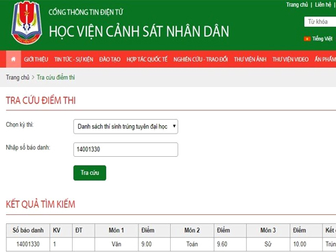 Còn Học viện Cảnh sát Nhân dân đưa mức điểm chuẩn là 24,15, tiêu chí phụ là tổng điểm 3 môn đạt từ 21,4 và điểm môn Ngữ văn đạt từ 7,75.
