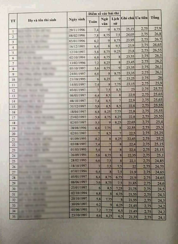 Danh sách kết quả điểm thi của 35 thí sinh tự do ở Lạng Sơn từng được cho là điểm cao bất thường.