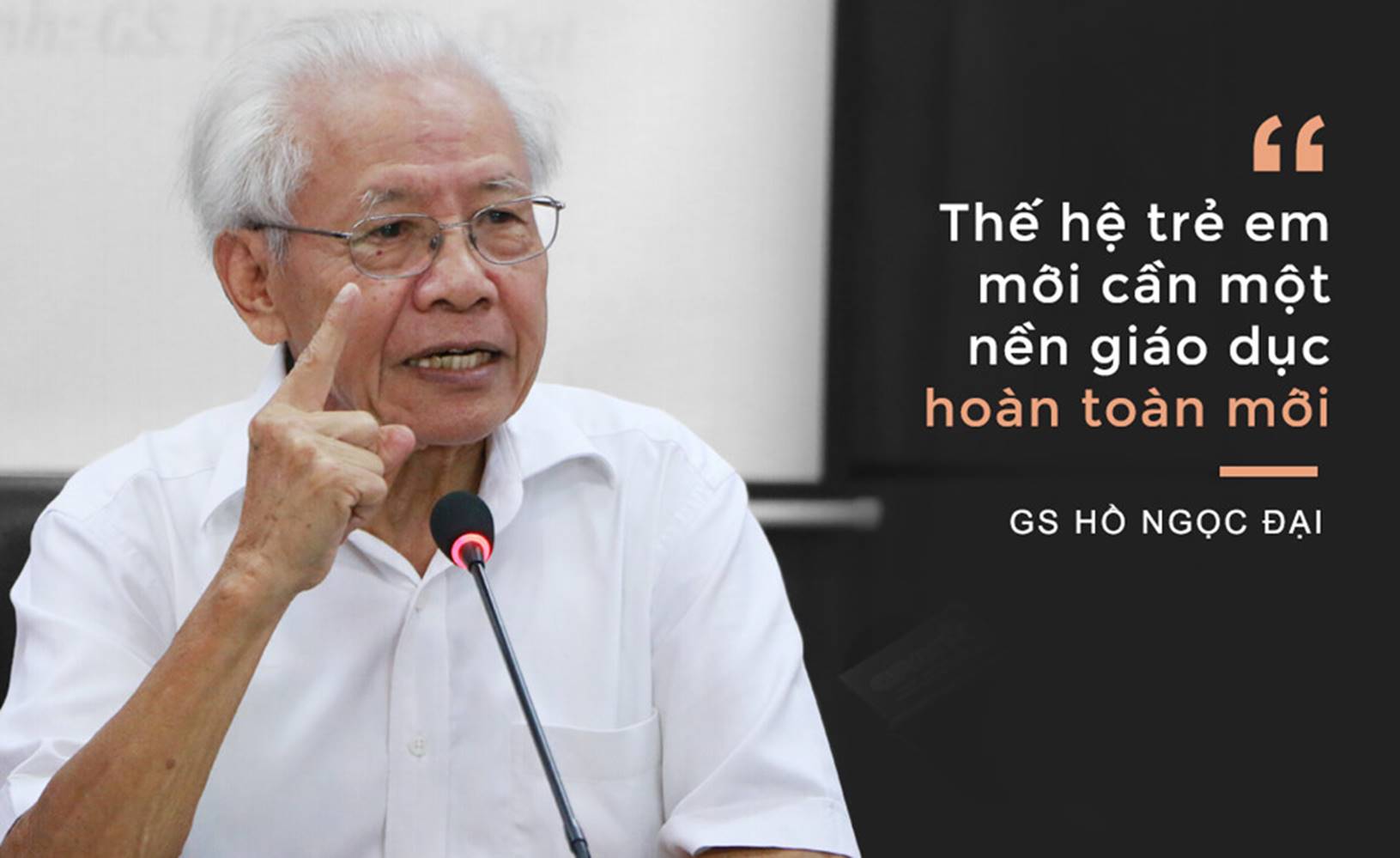 Triết lý giáo dục của GS Hồ Ngọc Đại là "Thế hệ trẻ em mới cần một nền giáo dục hoàn toàn mới". Đồ họa: Phượng Nguyễn.