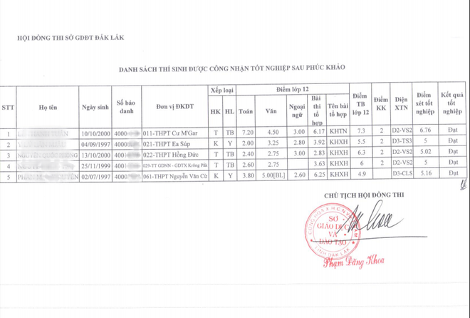 Danh sách thí sinh được công nhận tốt nghiệp sau phúc khảo tại Đắk Lắk