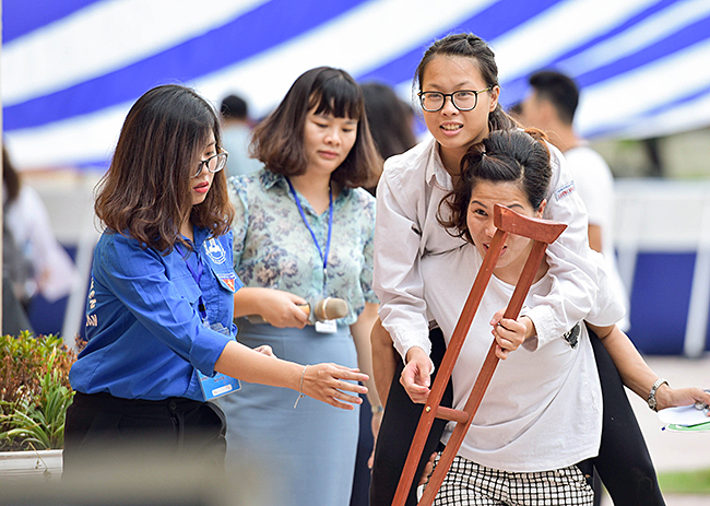Trước ngày thi, học sinh này bị tai nạn gãy chân, nên mẹ của thí sinh không những chờ em suốt 3 tiếng, mà còn vào tận phòng thi để cõng em ra xe.