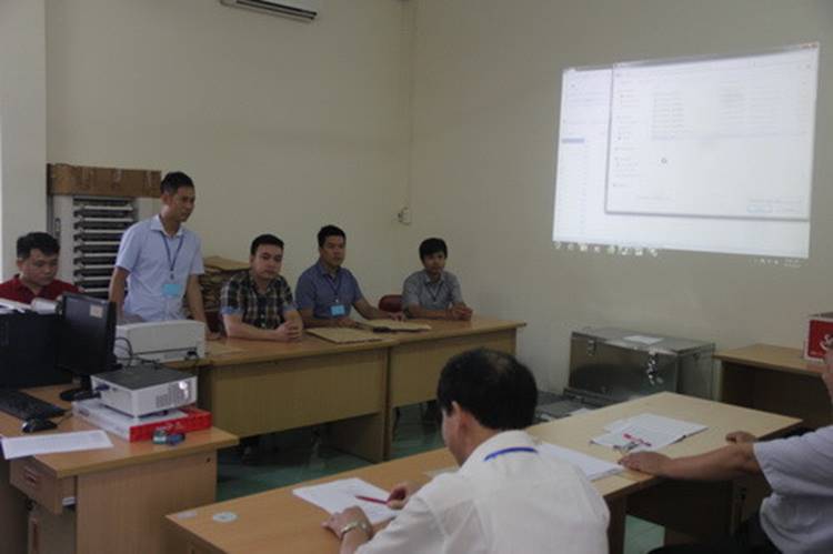 Bên trong phòng chấm trắc nghiệm tại Hội đồng thi tỉnh Cao Bằng.