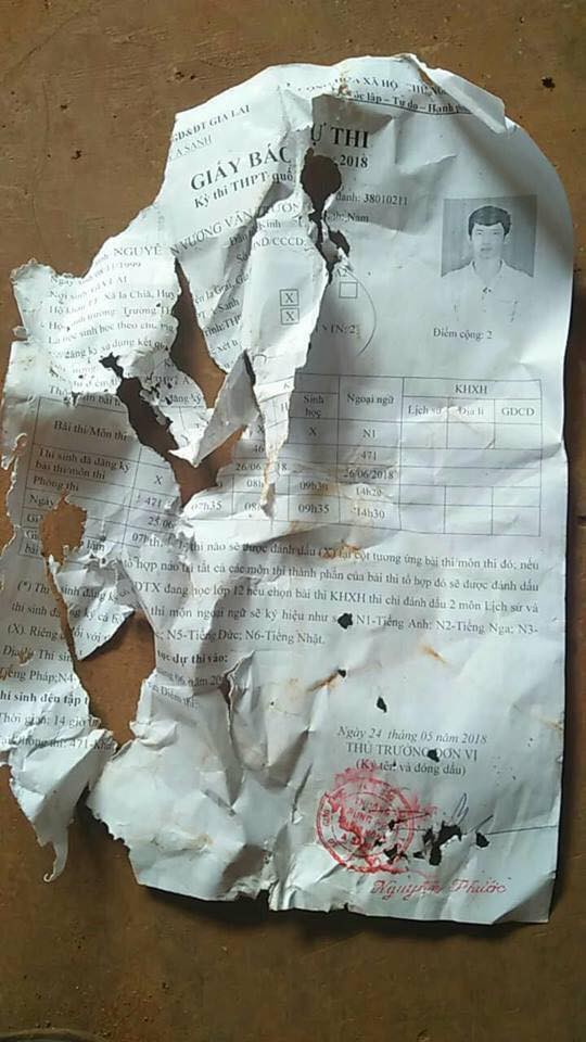 Trước ngày thi THPT Quốc gia 2018, thí sinh Nguyễn Vương Văn Trường lên mạng chia sẻ hình ảnh giấy báo dự thi của mình bị chuột gặm nát.
