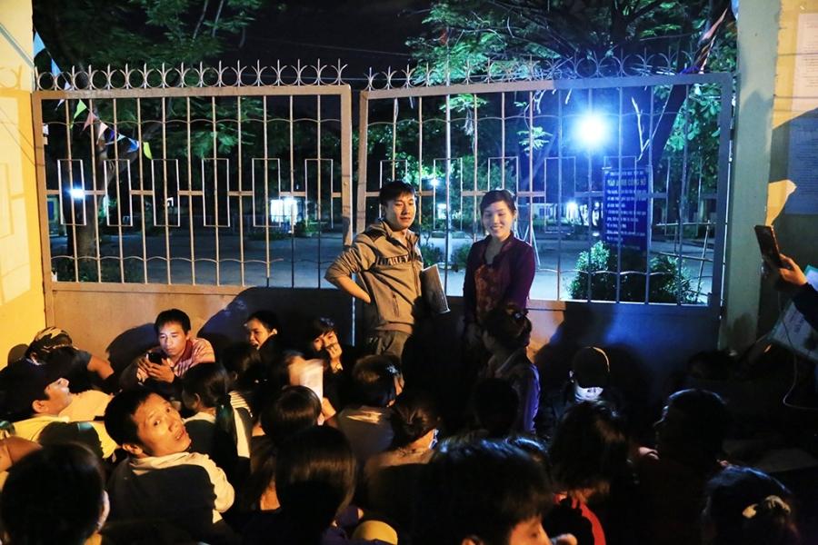Tuy nhiên, sau nhiều giờ chờ đợi, đến 1h sáng ngày 26/6, hàng trăm phụ huynh vẫn chưa được vào bên trong trưởng Tiểu học Tuy An để nộp hồ sơ. Ảnh: Văn Dũng