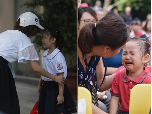 Hoa hậu đẹp nhất Châu Á Hương Giang lại đưa con đến trường từ hôm 3/9. Nếu như con gái lớn Tiểu Panda nhõng nhẽo trước khi đi học thì cô em Polar lại bạo dạn và không hề khóc.