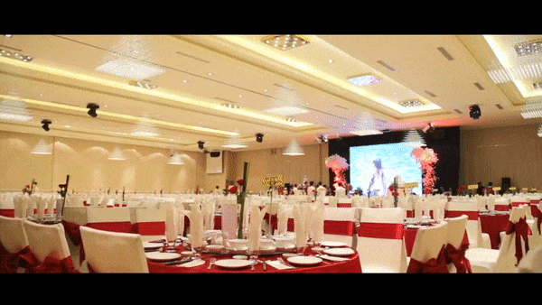 Không gian tiệc cưới được bày trí long trọng, cầu kì.