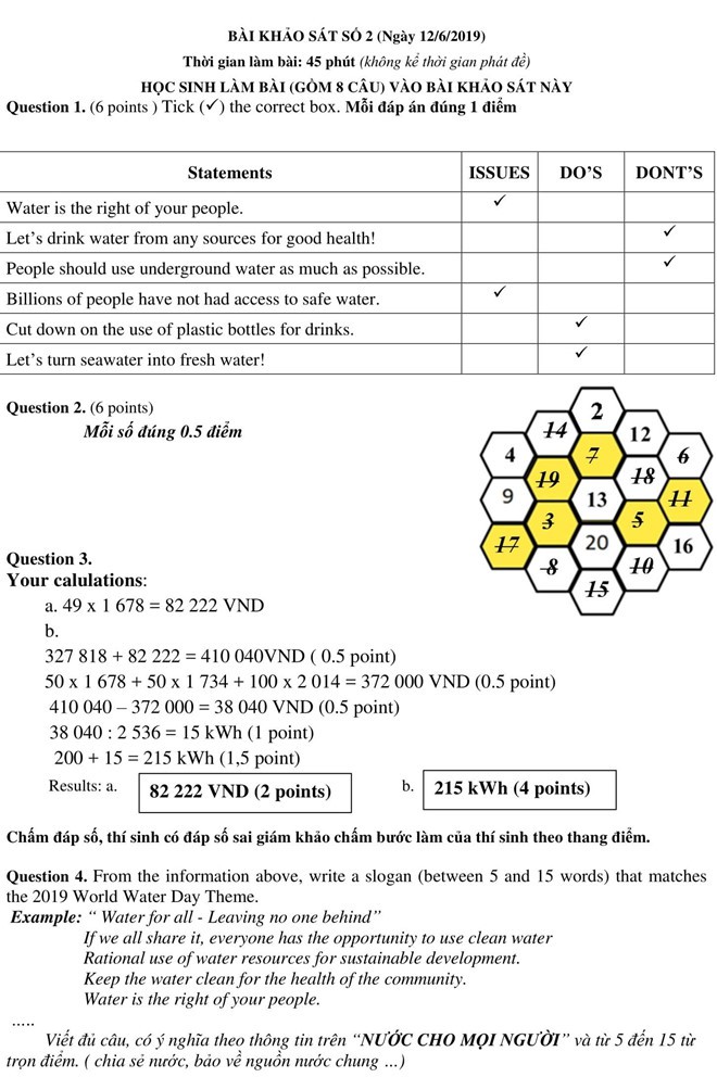 Sau đây là đáp án đề thi tự luận:
