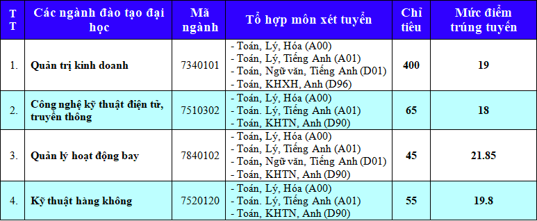 Học viện Hàng không Việt Nam vừa công bố điểm chuẩn 2018 theo kết quả thi THPT quốc gia.