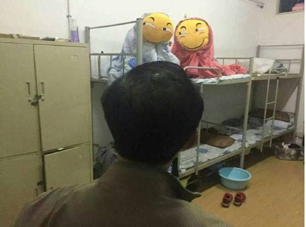Cụ thể, khi một đoàn giáo viên đi kiểm tra tới phòng kí túc xá nọ thì chẳng thấy bóng dáng học sinh, sinh viên nào. Thế nhưng, phía giường tầng ở trên lại xuất hiện 2 "sinh vật lạ" chùm kín chăn, mặt vàng chóe cười tươi rói nhưng trông cực gian.