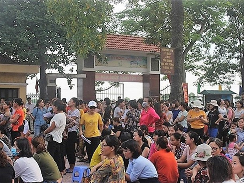 Hàng trăm phụ huynh học sinh sau đó bức xúc đã vây cổng trường, yêu cầu hiệu trưởng nhà trường trả lời rõ ràng về những khoản thu chi đầu năm.