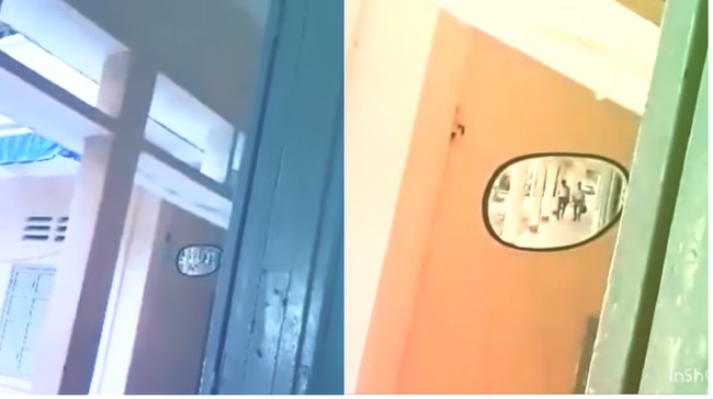 Trong hình ảnh được chia sẻ trên mạng, hình ảnh của 2 thầy giáo đang đi lại gần cửa lớp hiện rõ mồn một trong gương. Nhờ có "camera", không ít học sinh đã kịp dừng ngay những trò nghịch ngợm của mình và chỉnh trang lại tư thế học hành nghiêm túc.