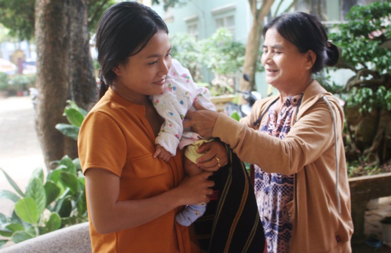 Bà đã đi theo con gái, bế cháu để H’Đanila yên tâm thi cử.
