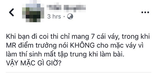 Được biết hiện nay vẫn chưa có văn bản, nghị định , thông tư nào cấm các giáo viên đến trường nên việc làm trên đã khiến cho nhiều nữ giám thị "khóc mếu’ vì lỡ mang hành lý, tư trang đi coi thi chỉ toàn váy.
