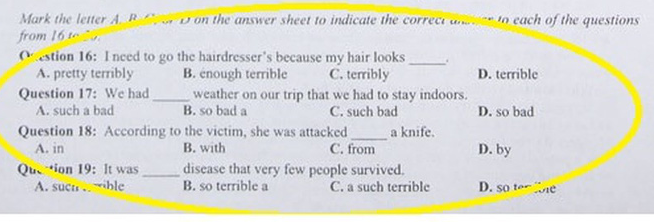 Đề thi thử của trung tâm tiếng Anh đặt trong trường