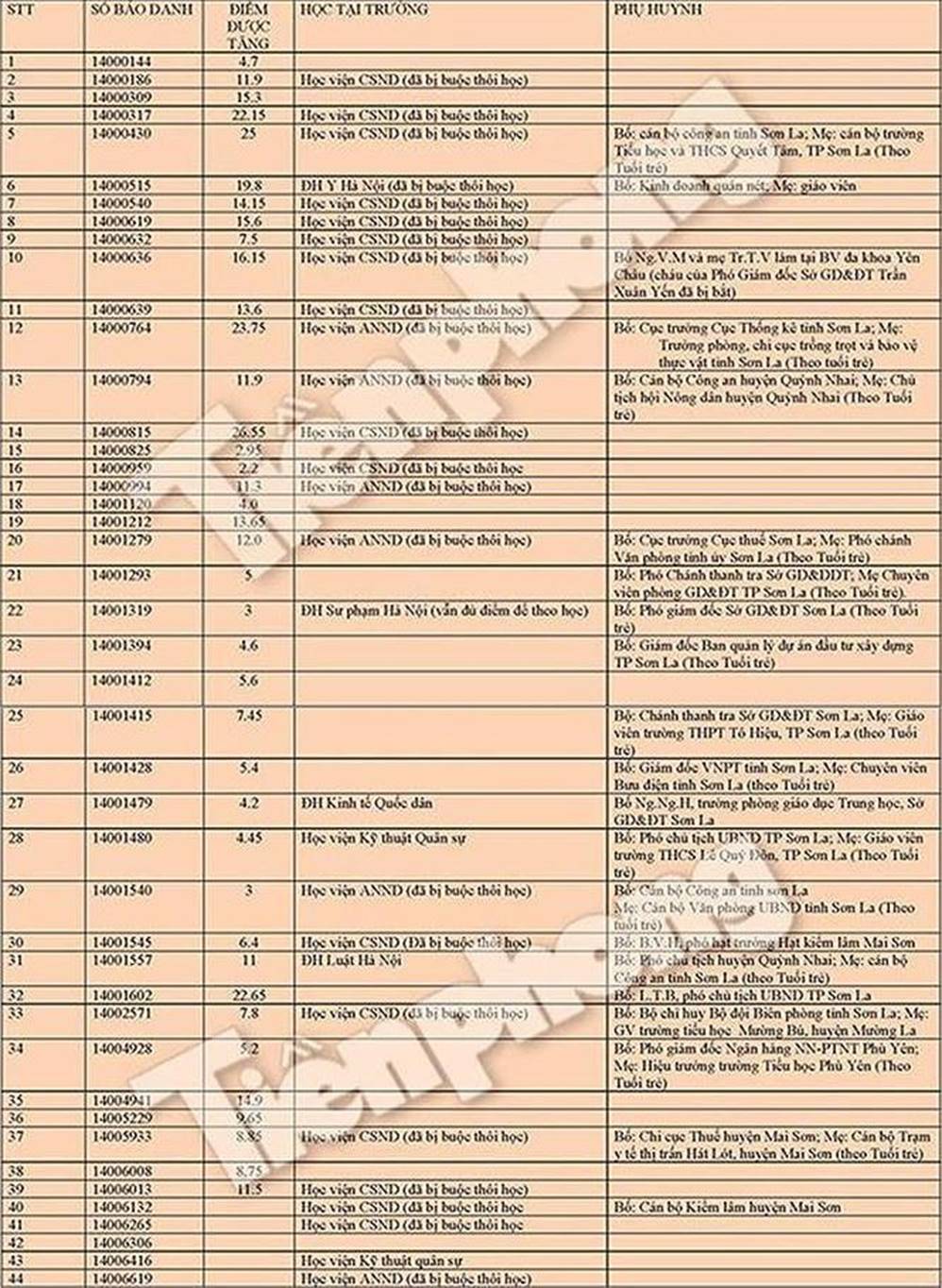 Trong các trường hợp thí sinh là con em cán bộ công chức, đảng viên tỉnh Sơn La, có ít nhất ba trường hợp là con cán bộ chủ chốt Sở GD-ĐT tỉnh Sơn La.