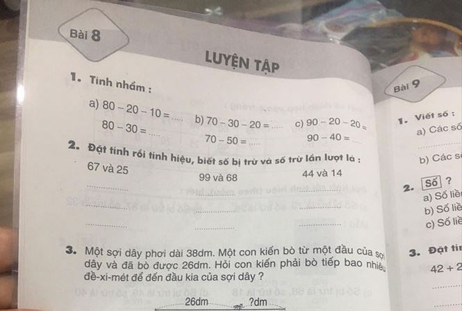 Sách bài tập Toán, Tiếng Việt lớp 2 có phần làm bài tập ngay trong sách.
