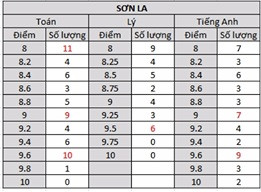 Phân tích cụ thể hơn bằng bảng số liệu trên cho thấy tỉnh Sơn La có số thí sinh đạt điểm từ 9 đến 9,8 cao bất thường.