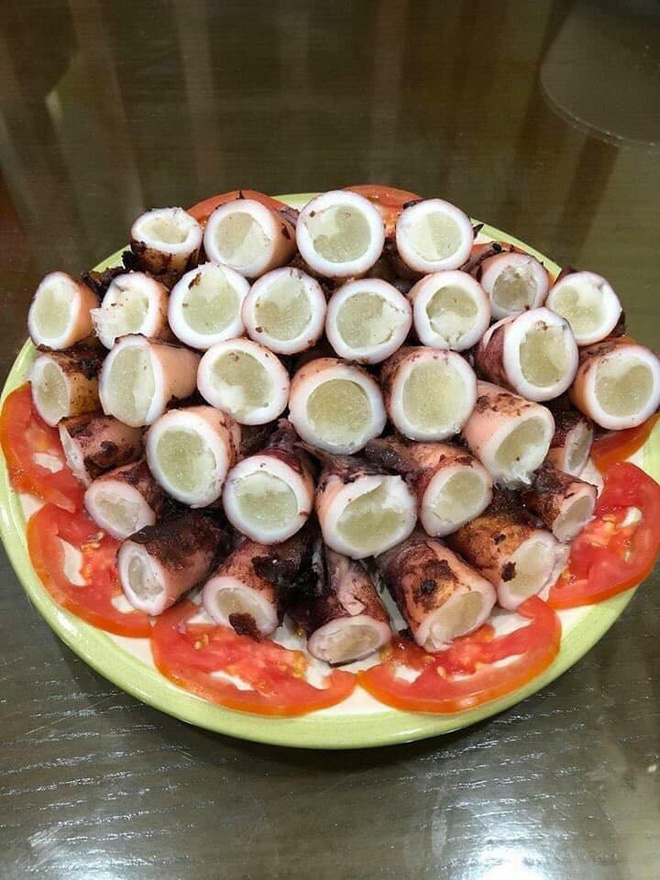 Qua bàn tay chế biến của vị khách, chẳng còn ai nhìn thấy món mực trứng chiên nữa, mà thay vào đó là những con mực đen đúa như than, xấu xí và bám đầy dầu mỡ.