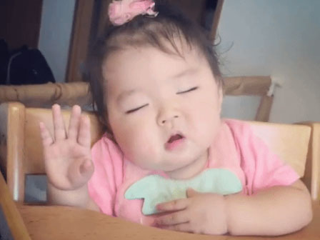 Đoạn clip dài 40 giây này ghi lại hình ảnh một bé gái đang được cho ngồi trong xe đẩy và ăn bánh. Điều thú vị nhất ở cô bé này chính là trong khi tay thì liên tục lấy bánh ăn, miệng vẫn nhai khí thế nhưng mắt thì lại nhắm tịt lại, buồn ngủ đến mức cứ thế mà gật gà gât gù nghiêng hết bên này đến bên khác. Đến khi được người lớn gọi thì lại nhẹ nhàng mở mắt ra, bóc bánh tiếp và... đâu lại vào đấy.