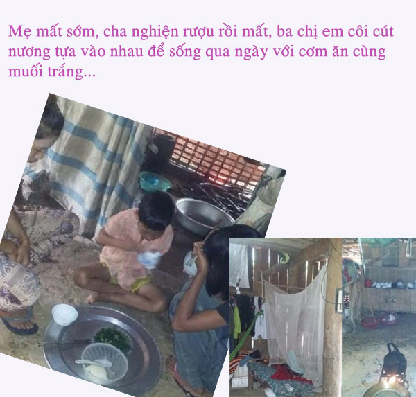 Hình ảnh ba chị em người Dao là Hà Thị Phấn (14 tuổi), Hà Thị Thúy (12 tuổi) và Hà Quốc Nam (9 tuổi, ngụ thôn Khe Quéo, xã An Lương, huyện Văn Chấn, tỉnh Yên Bái) bên mâm cơm chỉ có rau muống luộc cùng muối trắng khiến nhiều người không cầm được nước mắt. Mẹ bỏ đi, cha nghiện rượu rồi mất bỏ lại ba chị em côi cút trong căn nhà xiêu vẹo, đổ nát và hoang lạnh. Xem chi tiết TẠI ĐÂY