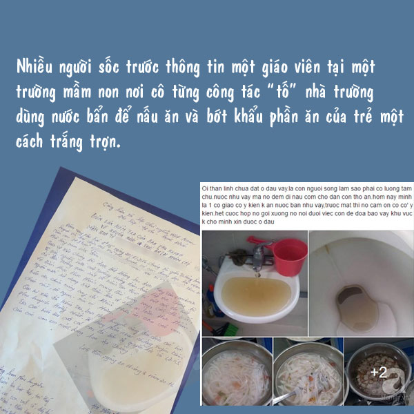 Giáo viên tố trường mầm non dùng nước đục ngầu như nước bồn cầu nấu ăn cho trẻ
