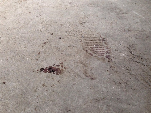 Dấu giày in máu tại khu bếp nghi của hung thủ |