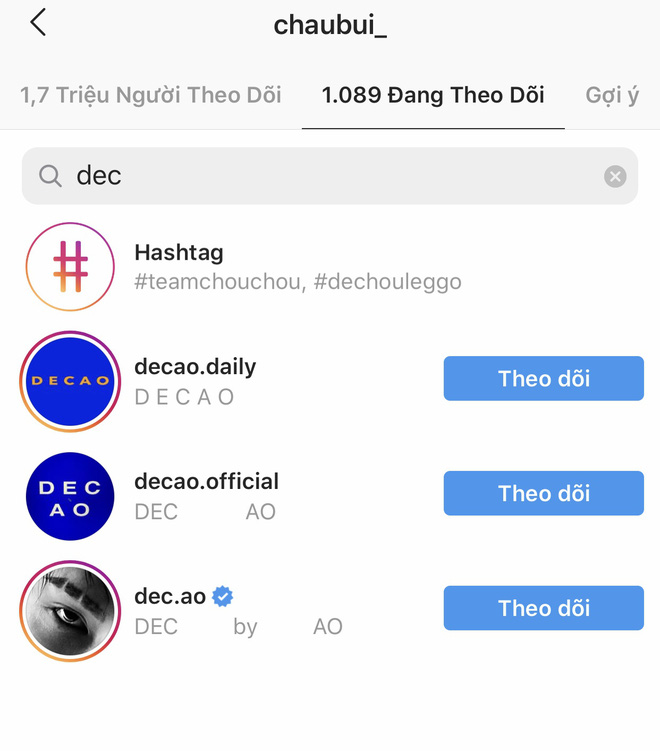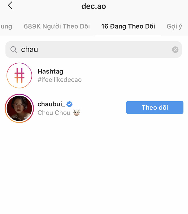 Hiện tại, Châu Bùi - Decao vẫn follow nhau trên IG.