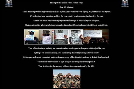 AFP đưa tin, trong "Thông điệp gửi Thủy quân lục chiến Mỹ" dài 7 câu, nhóm tin tặc nói rằng quân đội Syria "nên là đồng minh, chứ không phải kẻ thù của các bạn", để chống lại "một kẻ thù chung thấp hèn".