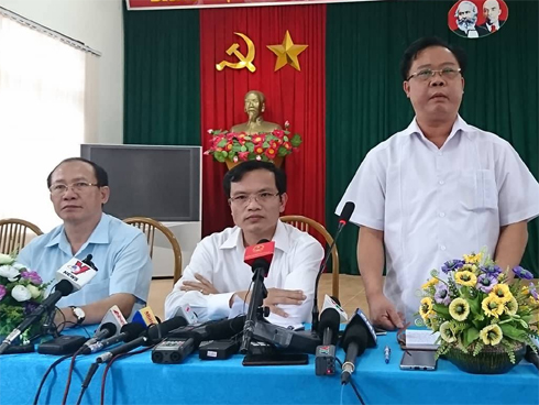 Ông Mai Văn Trinh - Cục trưởng Cục Quản lý chất lượng, Bộ GD-ĐT trả lời báo chí về kết quả rà soát ban đầu ở tỉnh Sơn La trưa ngày 23/7. Ảnh: Đoàn Bổng