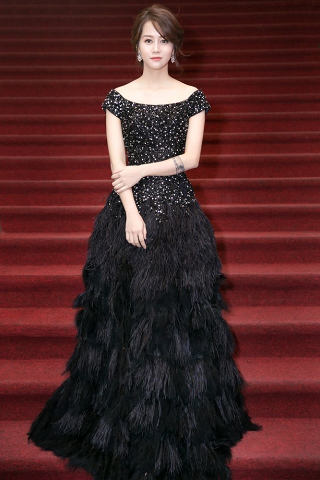 An Nguy khoe vai trần trên thảm đỏ lễ trao giải Ngôi sao xanh 2017.