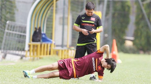 Buổi tập hôm qua (14/5) của U23 Việt Nam đã chứng kiến sự trở lại của nhiều cầu thủ vừa trải qua thời gian dài phải ngồi ngoài để điều trị chấn thương như Phạm Hoàng Lâm, Nguyễn Thanh Hiền, Huỳnh Tấn Tài…Như vậy hiện tại, trong thành phần của U23 Việt Nam chỉ còn 2 tiền vệ Nguyễn Tuấn Anh và Trần Phi Sơn là đang phải tập riêng bằng các giáo án hồi phục chấn thương.