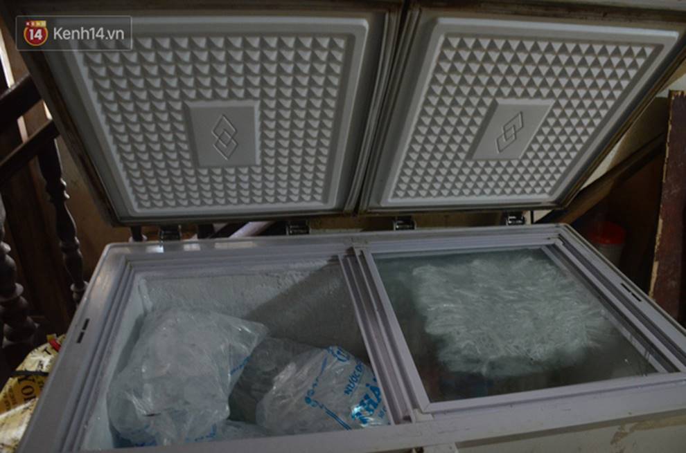 Tủ lạnh chất đầy đá do ông Hiệp bỏ tiền túi mua về cho người thuê trọ.